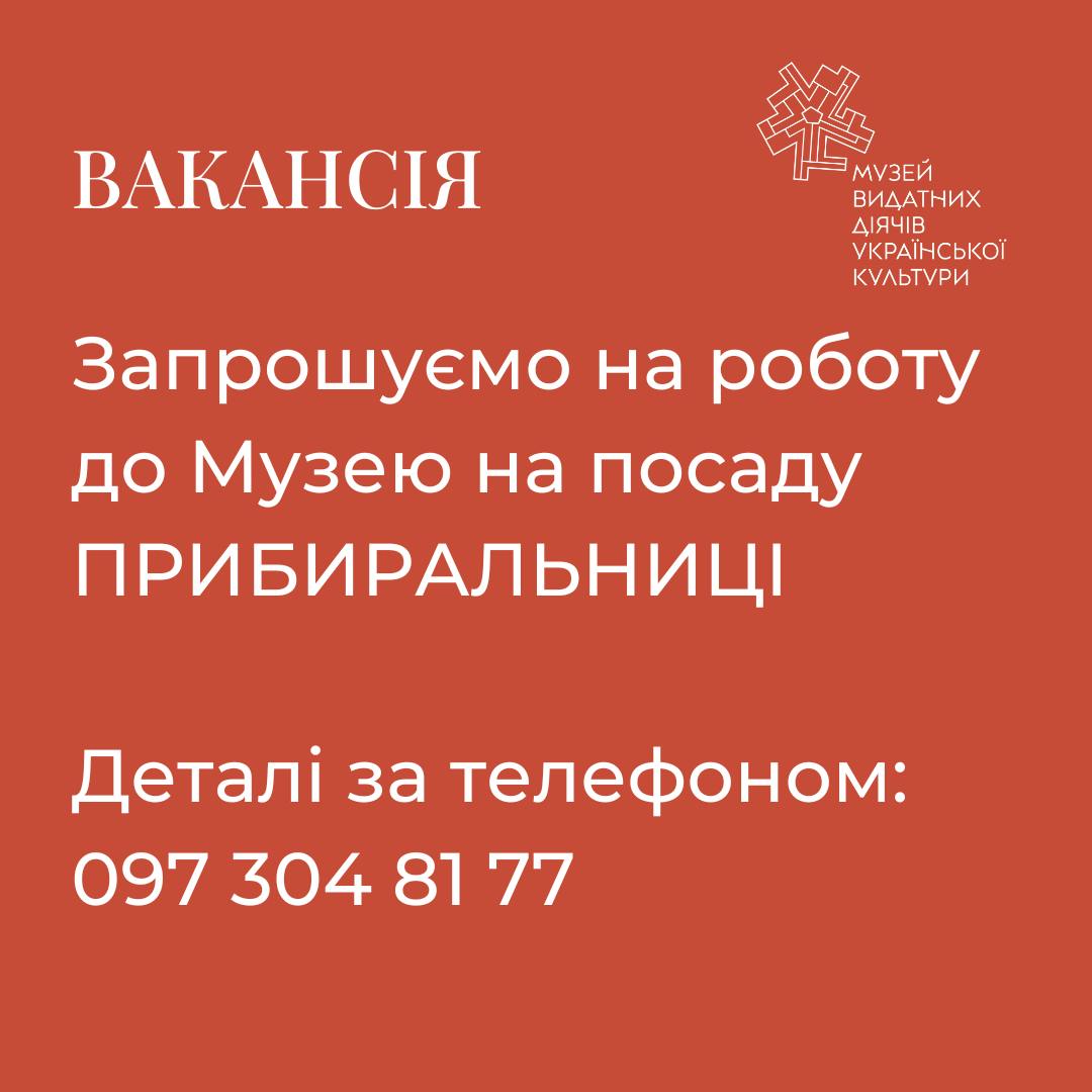 Музей запрошує на роботу. Деталі за телефоном 097 304 81 77